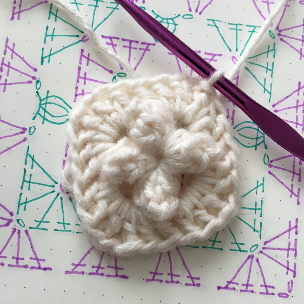 Rnd 4: This last round is a granny square round. make 3dc into the ch1 spaces and 3dc, ch2, 3dc into the corner spaces. (48 stitches)